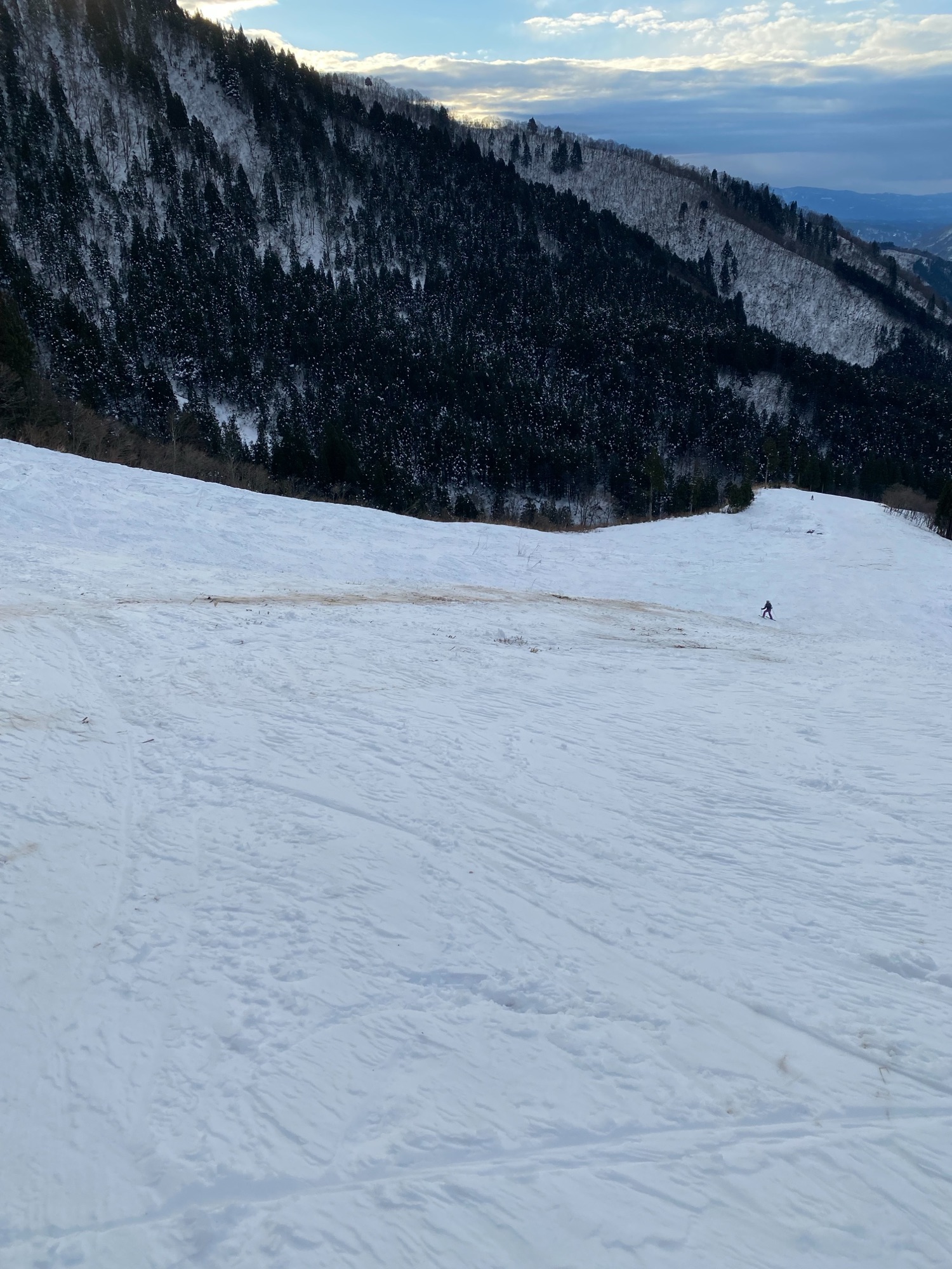 連日たくさんのお客様にご利用いただきありがとうございます。上部ゲレンデの雪不足が続いております。現時点では昨日同様整備無しの状態でのオープンを考えておりますが今夜も気温が高い状態が続く予報です。最終判断は明朝とさせていただきますのでご了承くださいませ。下部ゲレンデにつきましては本日16時より雪入れ作業を行いますので明日は通常通り営業いたします。「撮影時刻29日15:50」