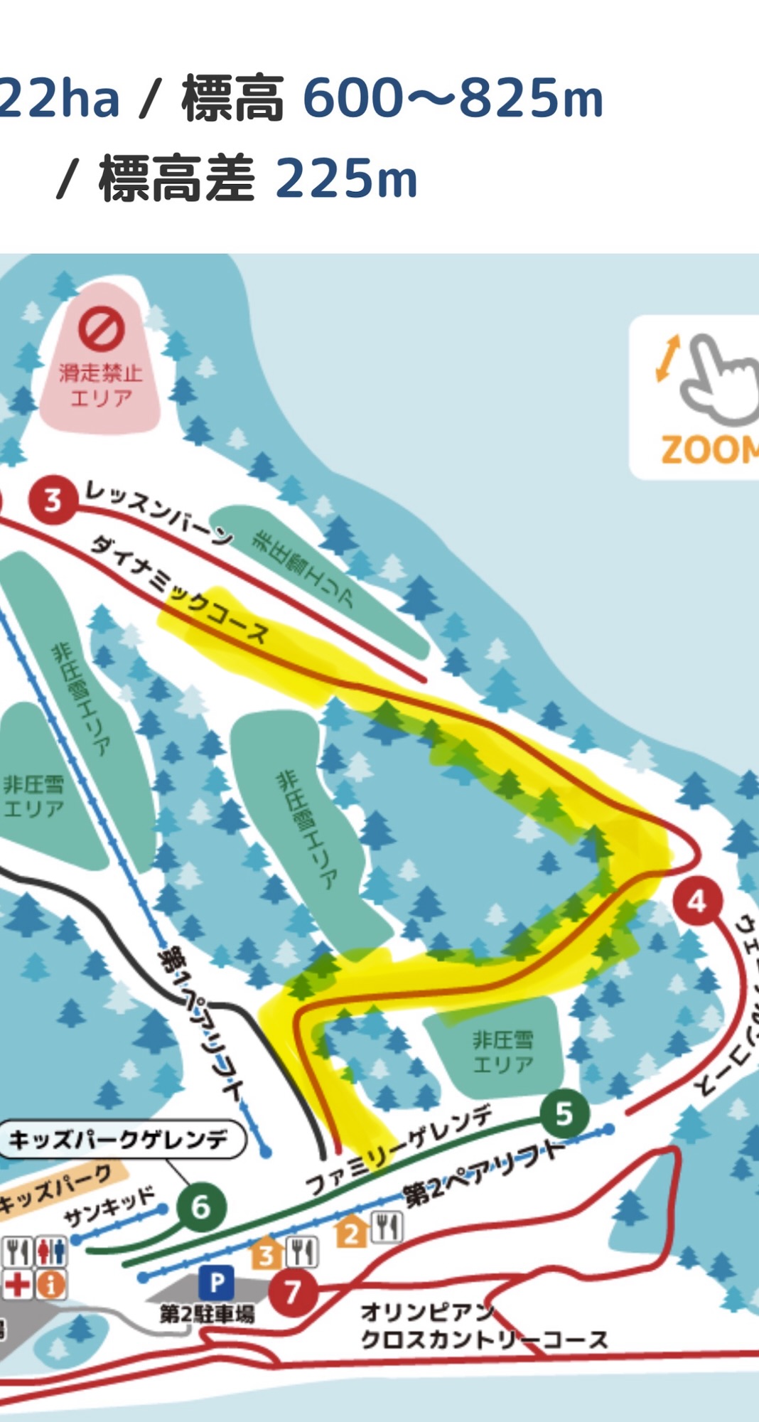 今日から金曜日まで小学生団体スキー教室が続きます。昼食の時間帯はレストランミレットが貸切となります。明日は11:15〜13:10です。また、今週末の大会で午前中に使用するコースについては図のイエロー部分となりますのでご留意ください。「撮影時刻27日18:00」