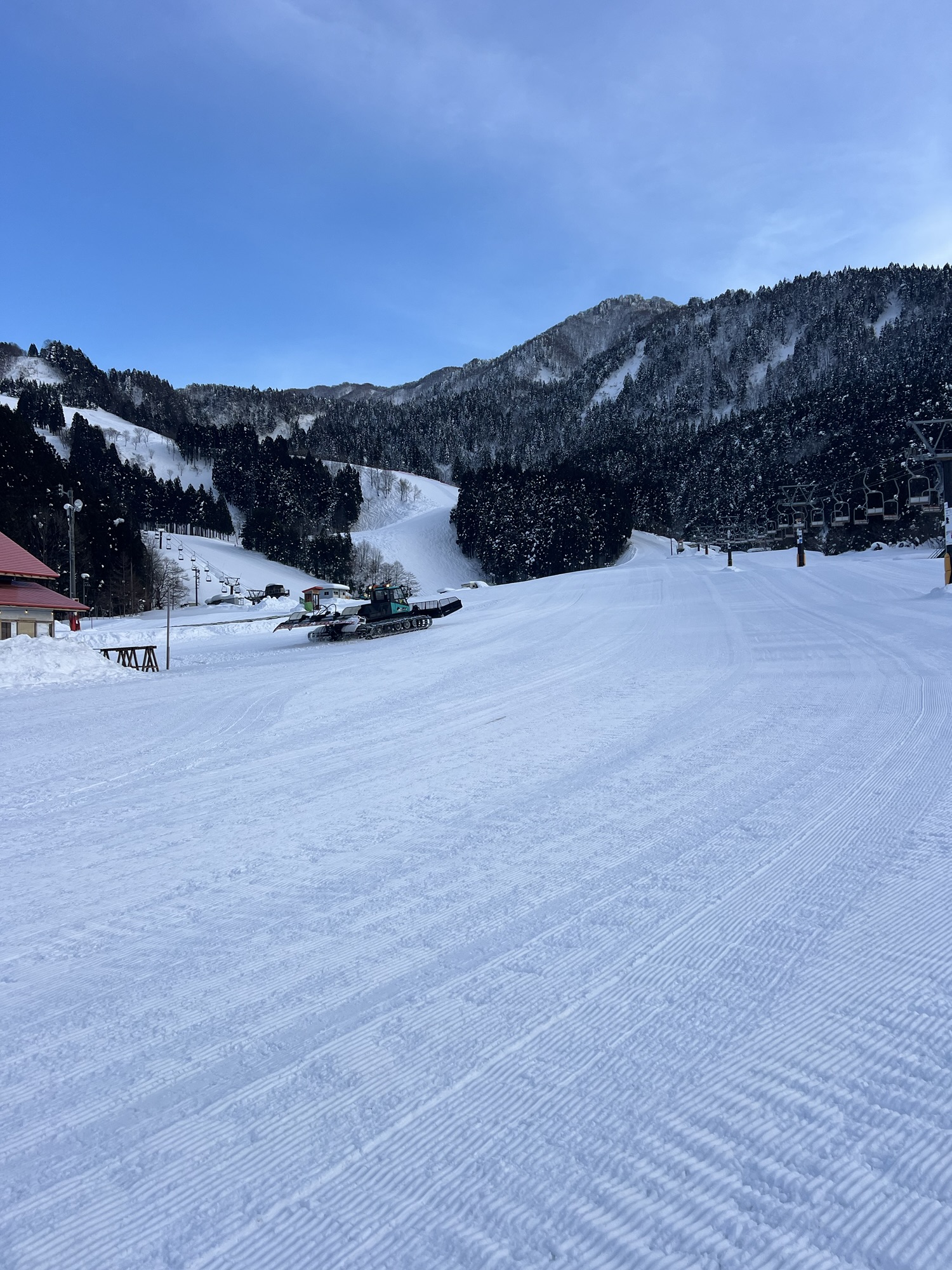 今日は快晴、青空と白い雪が絶景でした。お客様も終始笑顔で楽しんでいただけたようです。現在あわすのスキー場ではゲレンデ整備が行われています。明日は高校生のリフト代金は無料となります。生徒手帳等の身分証明書をご持参ください。電車バスをご利用の皆様は富山駅発8:20が午前最終便となりますのでご留意ください。明日のレストランミレット貸切時間帯は11:45〜12:30でございます。「撮影時刻 3日16:30」