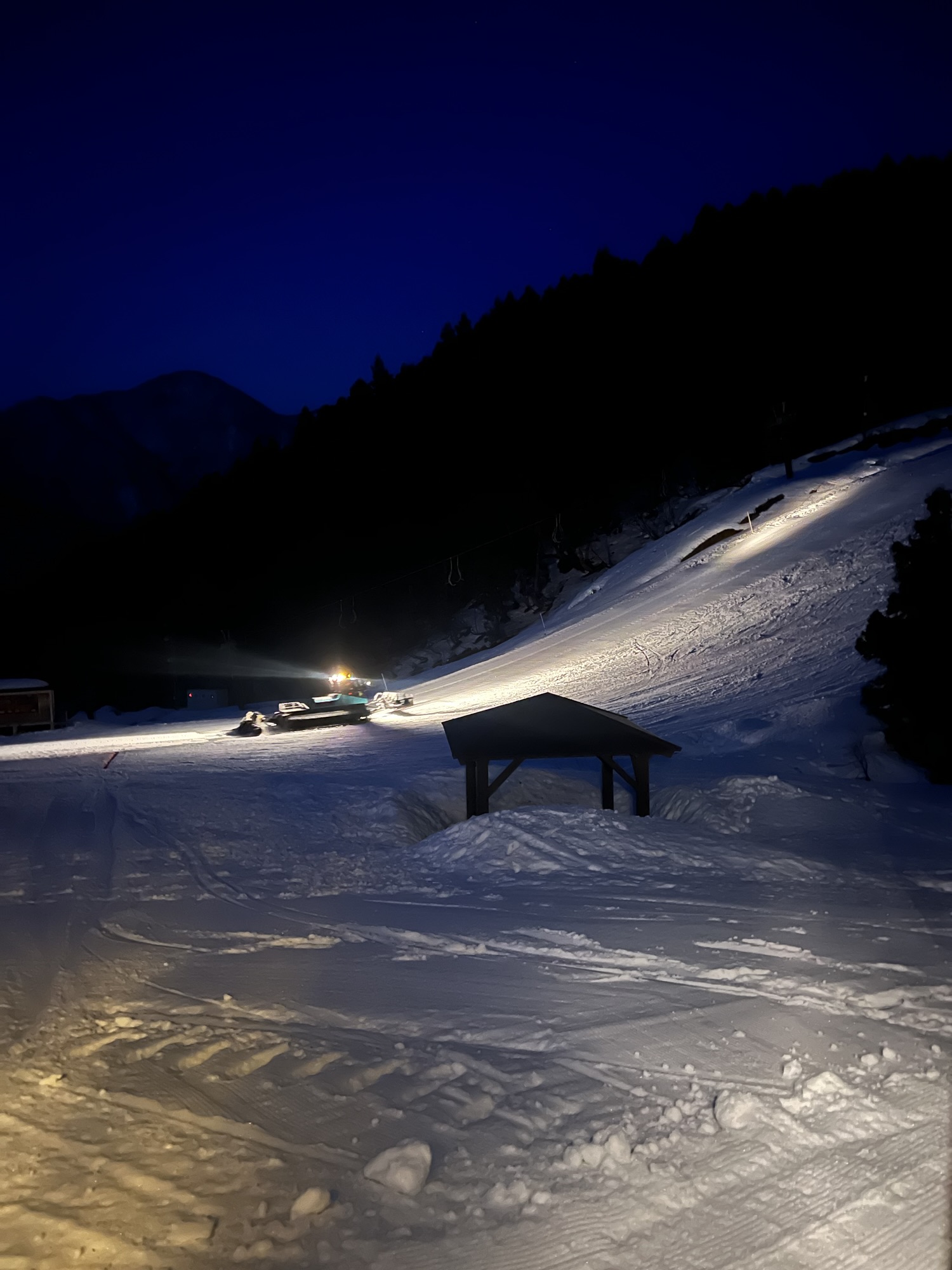 三連休は多くのお客様にご来場いただきありがとうございました。スキー、スノボ、ソリ、スノーモービル、レース、スクール、クロスカントリー、レストラン、狭いフィールドですが余すことなくご利用いただきありがとうございます。これも雪があるからこそ、今シーズンは雪溶けが加速中です。早めのご利用をお願いします。今週は25日が高校生無料、土曜日は中学生以下無料➕ソリ大会➕振る舞い鍋、日曜日は誰でも参加可能な大回転にチャレンジしましょう👍明日は9:00より営業を開始いたします。「撮影時刻23日18:20」