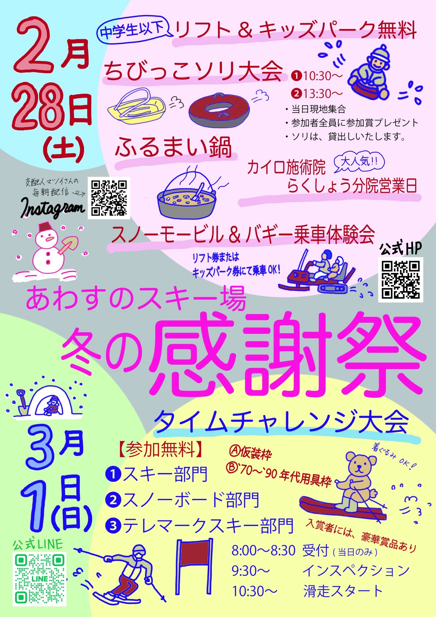 2026.02.25 新着情報 明日26日は定休日 今日は霧が晴れない1日でした。若者たちは一日中楽しく過ごしてくださいました😊スタッフも元気をもらいますよね。さて、明日は今シーズン最後の定休日をいただきます。明後日は午前9時オープンとなります。28日は感謝祭を開催いたします。中学生以下リフト代無料となりますので是非ご来場くださいませ。 「撮影時刻25日15:40」 前の記事へ 一覧へ戻る
