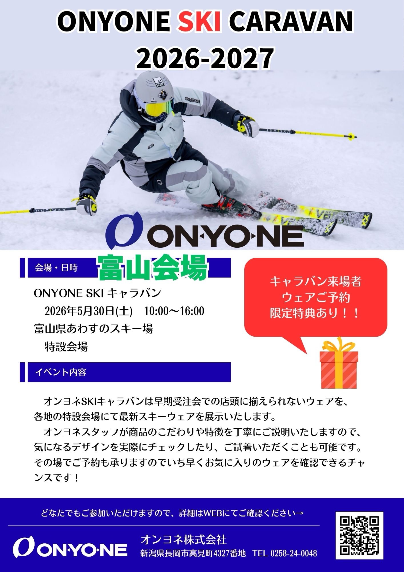 2026.04.07 新着情報 5月30日はオンヨネスキーキャラバンを開催します 再建スタートからご協力いただきグリーンシーズンを盛り上げようと提案をいただきスタート。北陸ではあわすのスキー場のみ開催です。ユーザーとメーカーの距離が一気に縮まるイベントです。みなさん是非ご来場くださいませ。 前の記事へ 次の記事へ 一覧へ戻る