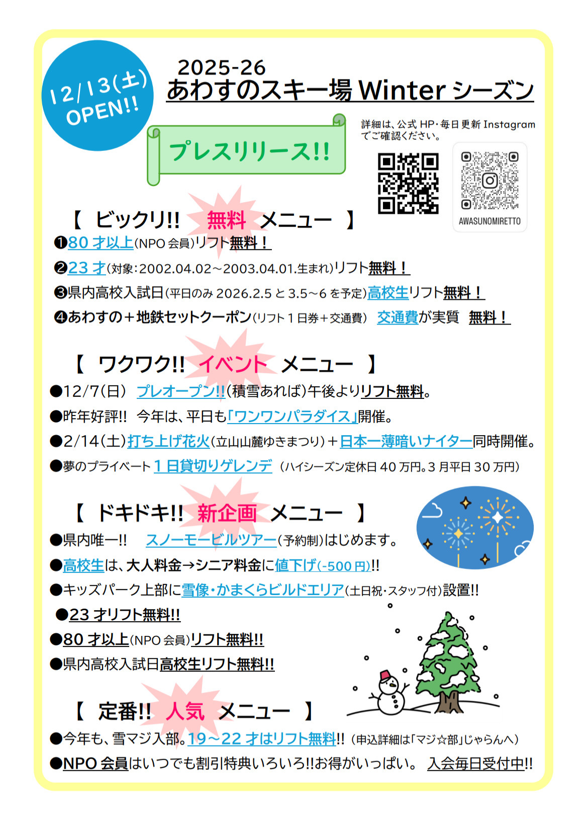 2025-26あわすのスキー場Winterシーズンプレスリリース!!